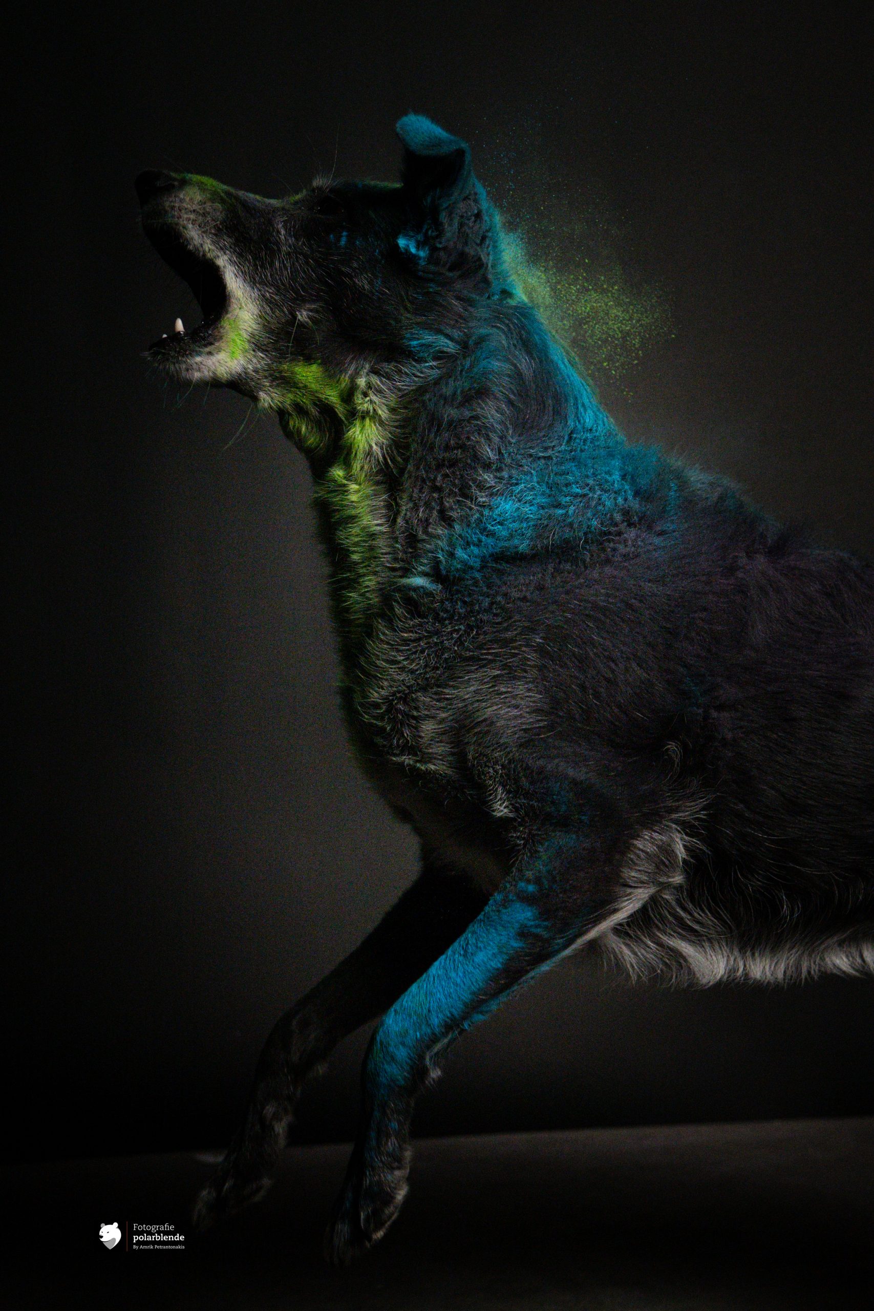 Tierfotograf polarblende - Hund Holi Farbe Bellend
